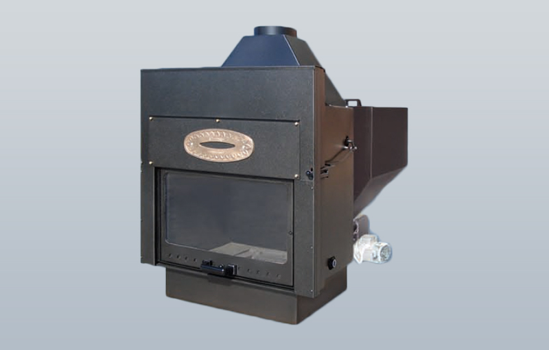 Característiques CLS / kw 24-33Calderes tipus xemeneia per encastar de llenya i pellet, per a la producció d'aigua calenta per a ús en calefacció i aigua calenta sanitària. Cos de caldera en acer amb tres passos de fums. Bescanviador format de tubs d'acer inox fàcilment accessibles per al manteniment, per impedir la formació de residus. Bescanviador de coure per a la producció de l'aigua calenta sanitària. Portes en acer i vitroceràmica amb alta resistència a la calor. Kit de desviació de fums. Base de materials refractaris. Cremador de ferro colat dotat d'un vis sens fi mecànic. Tremuja per a la càrrega de combustible. Regulació del combustible a través de l'inversor. Ventilador per l'aire comburent. Quadre de comandaments. Vàlvula d'estrella antiretorn de flama en la tremuja.